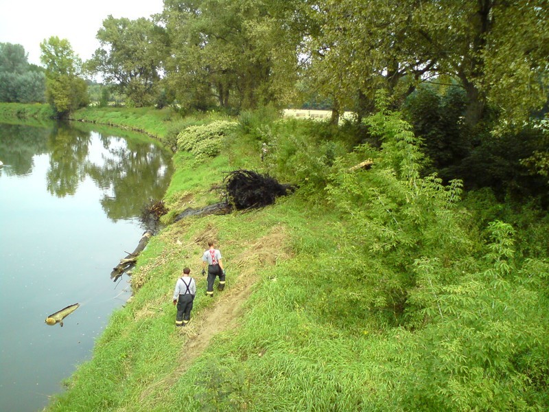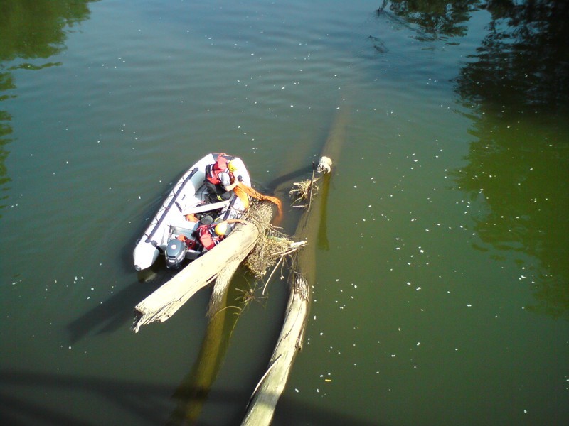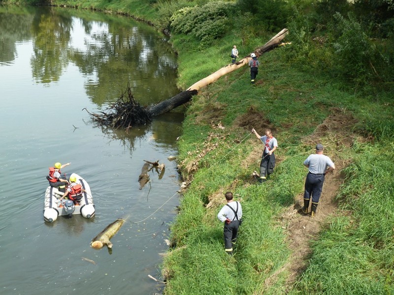 Vyprošťování stromů u mostu přes Moravu 1. 9. 2011